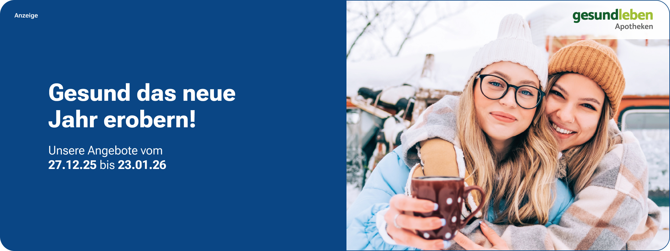 In den Winterwochen begleitet Sie Ihre Apotheke mit praktischen Tipps, kleinen Überraschungen und einem besonderen Highlight: dem OnlineAdventskalender mit Gewinnspielen und Inspirationen. So bleiben Sie entspannt, genießen die Adventszeit und starten voller Energie ins neue Jahr.